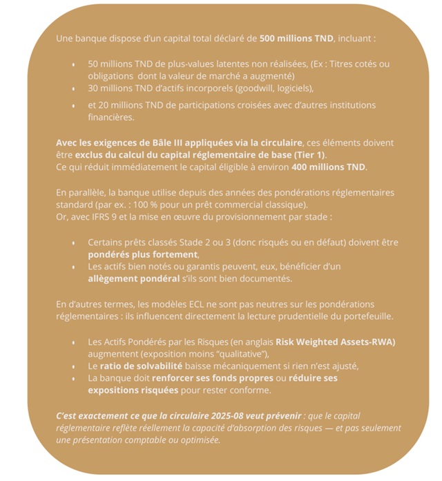 Cela revient à ancrer la logique Bâle III dans les pratiques locales, en responsabilisant les banques sur leur capacité à absorber les pertes à venir.